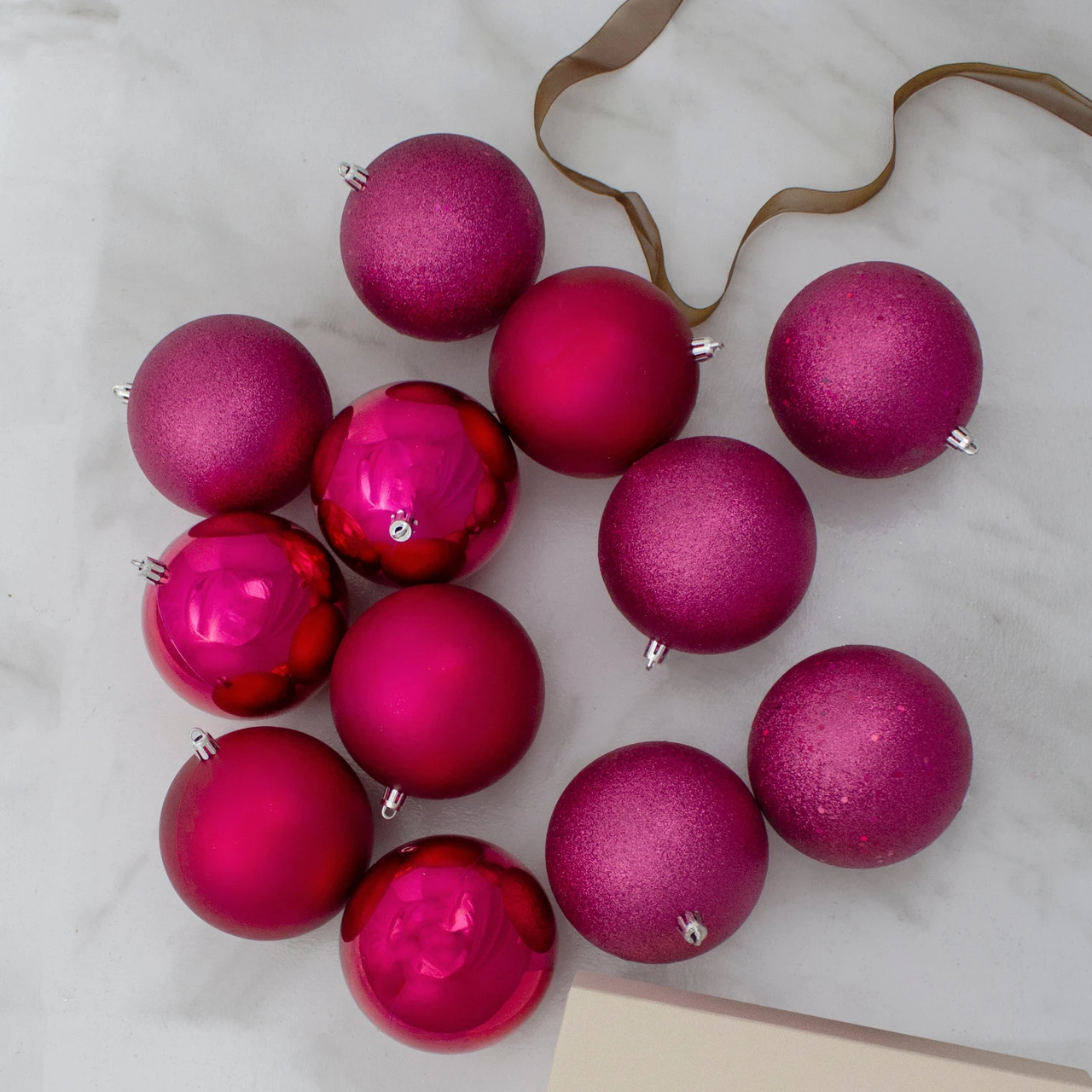 Set includes 3 of each finish for a total of 12 ornaments pictured