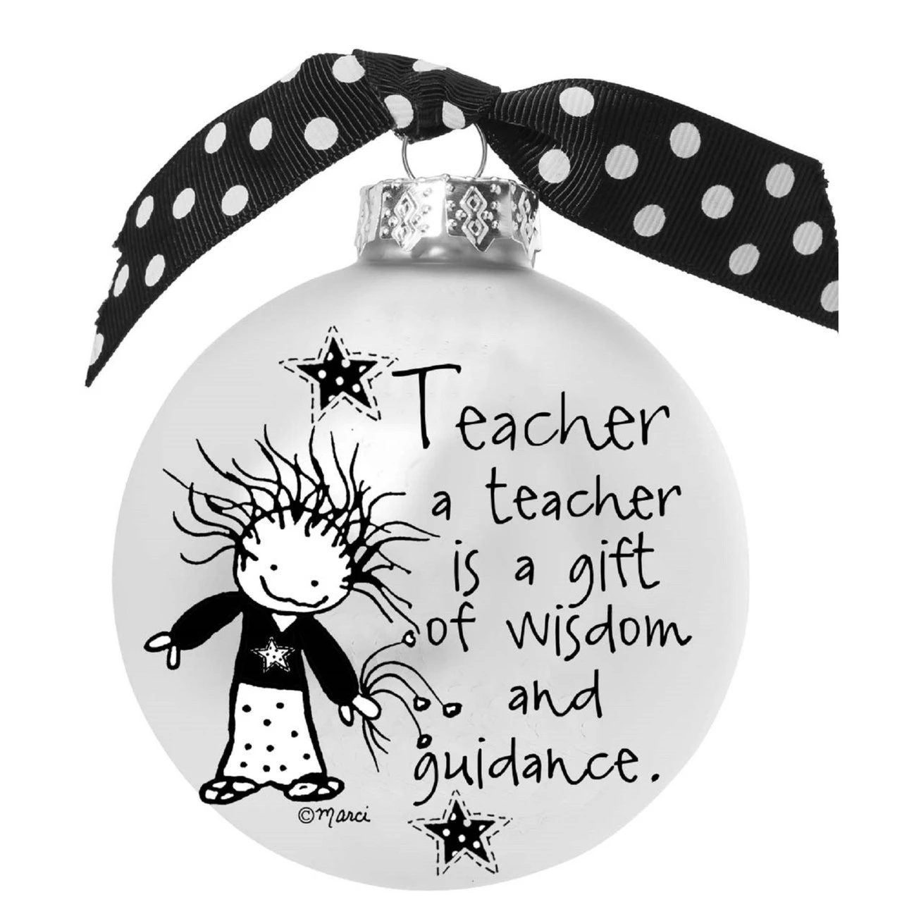 Black and white christmas ball ornament with a teacher is a gift print