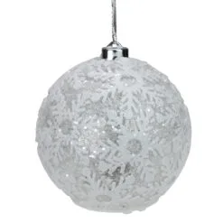 Snowflake design accented ornament; can be hung or set on a flat surface