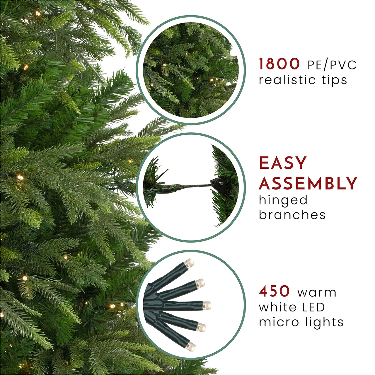 Dimensions: 7.5′ high (from the base of the stand to the top of the tree)