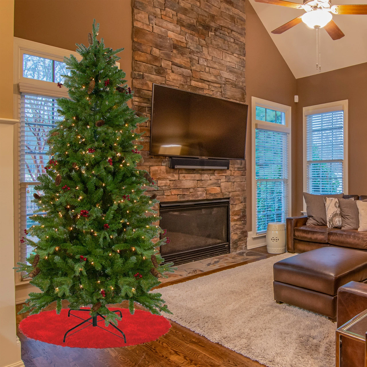 Dimensions: 7.5’ high (from the base of the stand to the top of the tree)