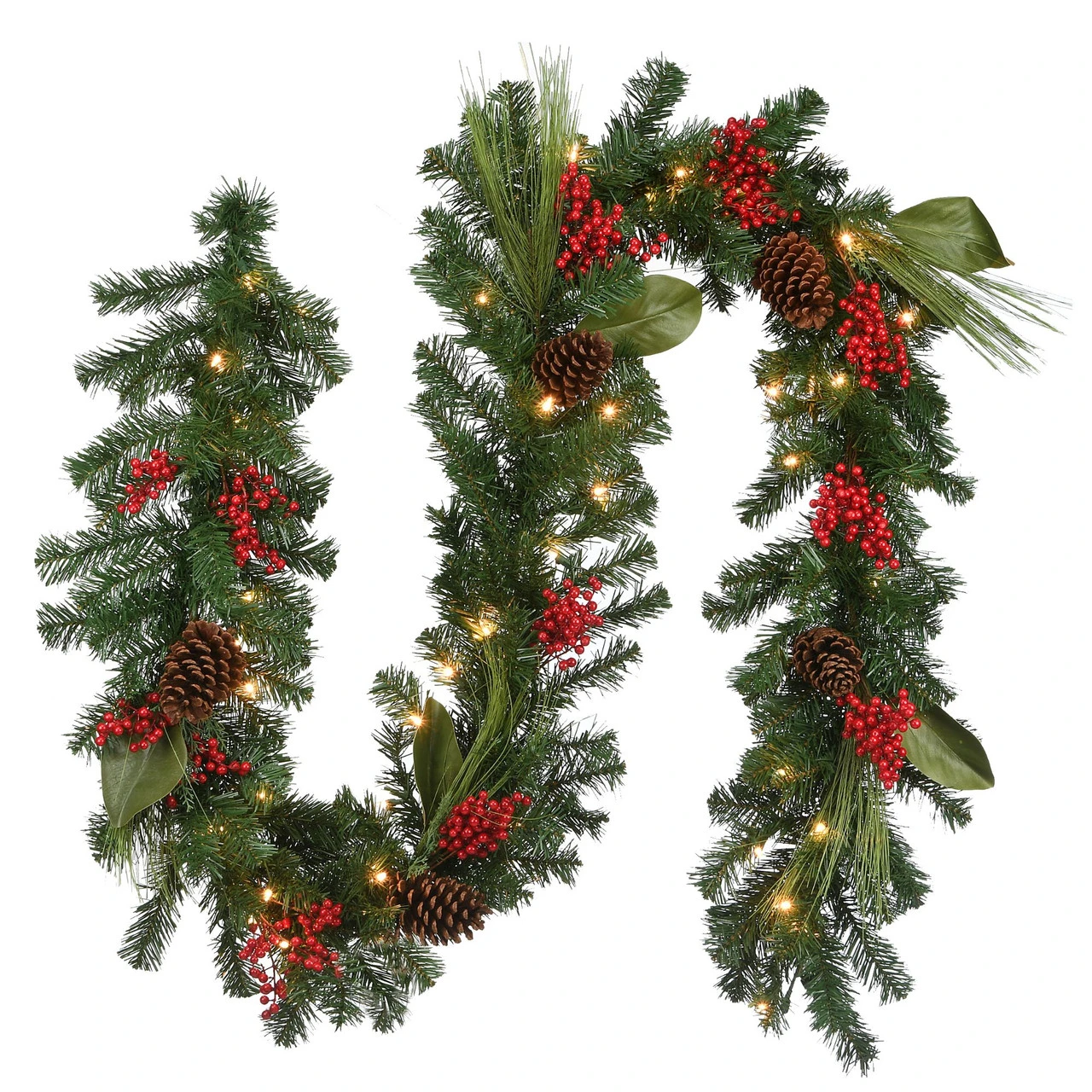 Trimmed with pine cones, red berries and bristle branches