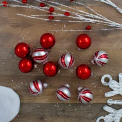 12ct Red And Silver 2-Finish Swirl Glass Christmas Ball Ornaments 1.75″ (45mm)