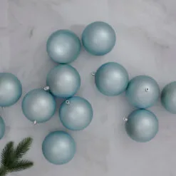 12ct Mermaid Blue Shatterproof Matte Christmas Ball Ornaments 4″ (100mm)