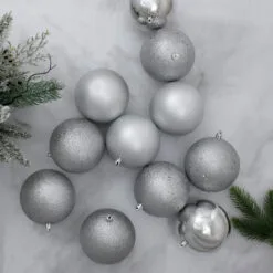 12ct Shatterproof 4-Finish Silver Splendor Christmas Ball Ornaments 4″ (100mm)