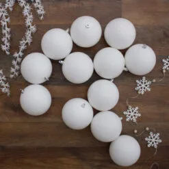 12ct Winter White Shatterproof Matte Christmas Ball Ornaments 4″ (100mm)