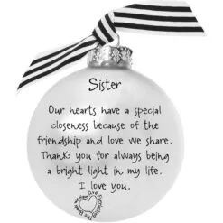 4″ Black And White Christmas Ball Ornament With A Sister Is A Forever Friend Print