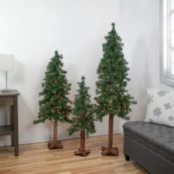 Set Of 3 Pre-Lit Slim Woodland Alpine Artificial Christmas Trees 5′ – Multicolor Lights