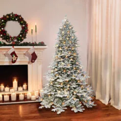 6.5′ Pre-lit Flocked Halifax Fir Artificial Christmas Tree, Clear Lights