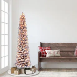 6.5′ Pre-lit Flocked Fashion Purple Pencil Artificial Christmas Tree, Clear Lights