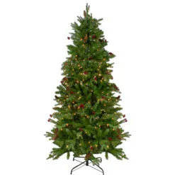 7.5’ Pre-Lit Mixed Winter Berry Pine Artificial Christmas Tree – Clear Lights