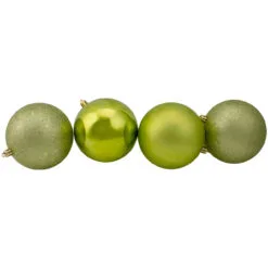 12ct Kiwi Green Shatterproof 4-Finish Christmas Ball Ornaments 4″ (100mm)