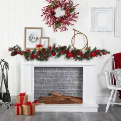 6’ X 8″ Pre-Lit Pinecone And Berries Artificial Christmas Garland, Clear LED Lights