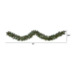 9’ X 7″ Pre-Lit Frosted Swiss Pine And Berries Artificial Christmas Garland, Clear LED Lights